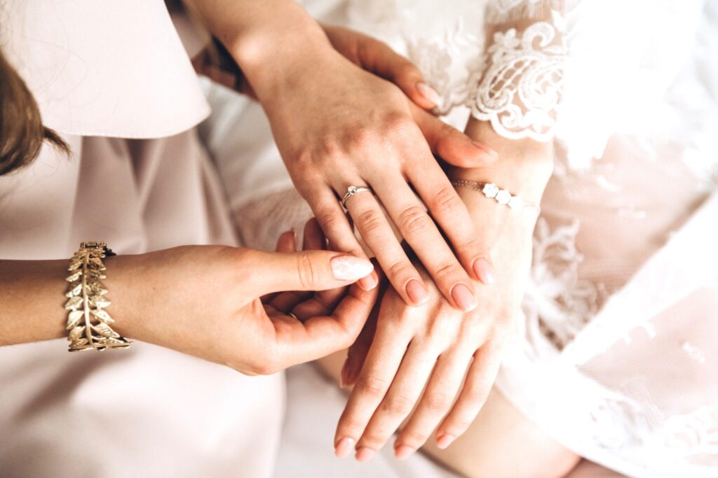 寄り添うように並んだ1粒のダイヤが、ふたりの絆を象徴するリング。柔らかな光をまとい、手元に優しい輝きを添えます。